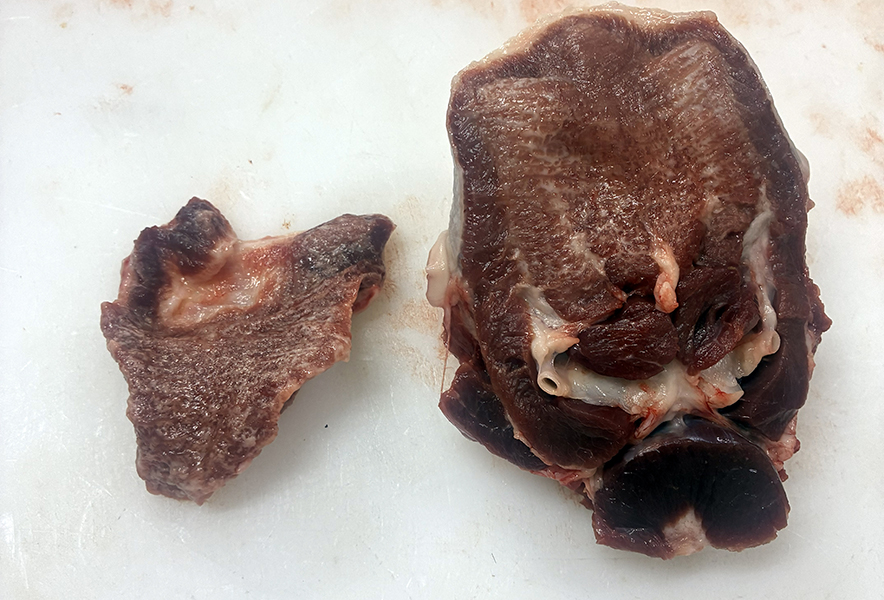改善前の牛タンのカット位置。右側のタン元を大幅に切り落していた。