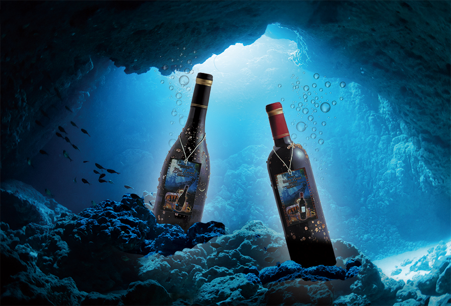 紫外線の届きにくい海底にワインボトルを沈め、水温・波のゆらぎ・水圧など、海ならではの環境を利用して熟成させる「海底熟成ワイン」。